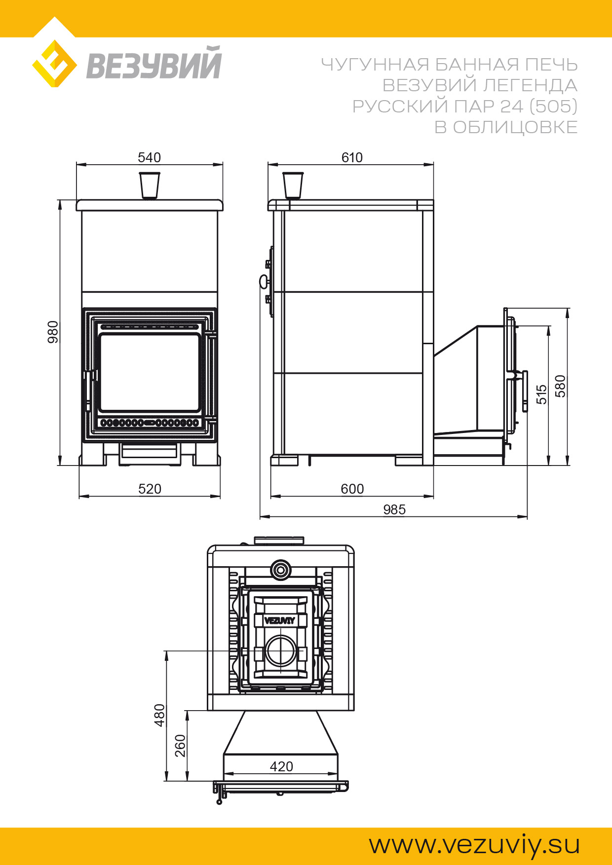 — ВЕЗУВИЙ Легенда Русский пар 24 (505) под облицовку;