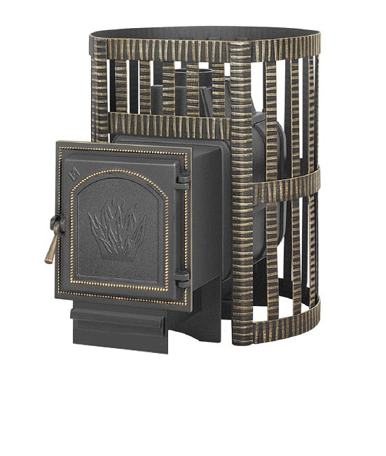 Печь для бани Везувий Легенда Ковка 22 (271) имеет сетчатый кожух-конвектор, выполненный из металлической текстурированной полосы, покрашенной термостойкой краской и покрытой патиной Бронза. Закладка камнем в таком кожухе позволяет в разы уменьшить излучение, получаемое от металла печи, при этом камень прекрасно аккумулирует тепло и сохраняет его на протяжении длительного времени. Конструкция печи Везувий рассчитана на установку в парильном помещении с выходом топки в смежное помещение. Глухая чугунная дверка 271 в печи надежна и долговечна в эксплуатации.