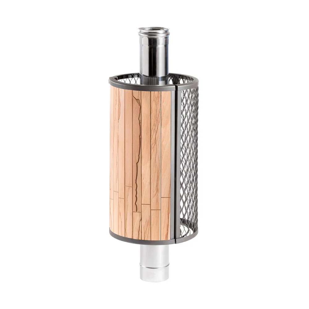 Сетка комбинированная защищает от излучения, уменьшая поверхность открытой трубы, снимает тепло с ее стенок и направляет его на прогрев камней.