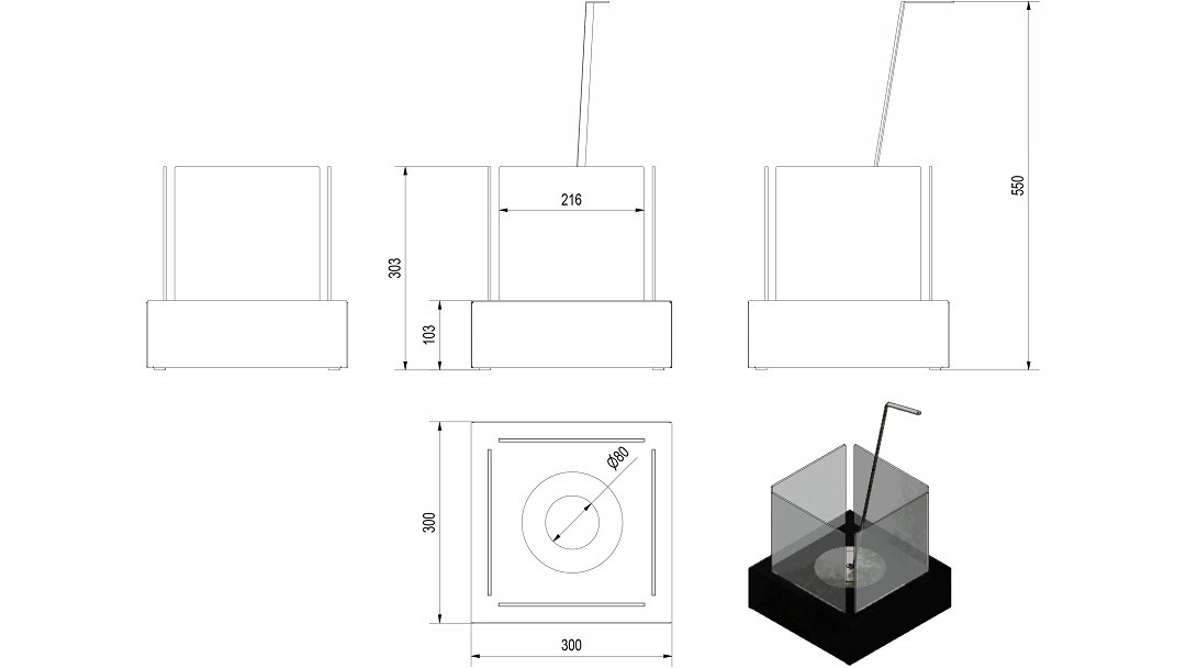 Биокамин Kratki Танго (Tango) 3 графит