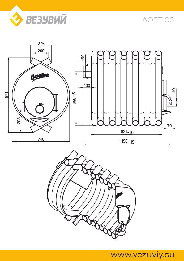 Договор заключается в момент оплаты Покупателем товара ТОЛЬКО в ОФЛАЙН-МАГАЗИНЕ. Делая предварительный заказ, Покупатель заверяет, что ознакомился и согласен с Политикой компании, она ему ясна и понятна.Печь отопительная ВЕЗУВИЙ АОГТ 03 (Ø150мм)