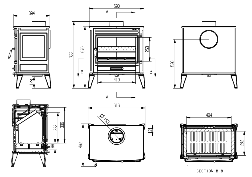 Для печи необходим дымоход диаметром 150 мм. Его можно подобрать в разделе дымоходы. Рекомендуем обратить внимание, что первыми элементами от печи могут быть дымоходы черного цвета из котловой стали,которые можно подобрать в разделе дымоходы КПД