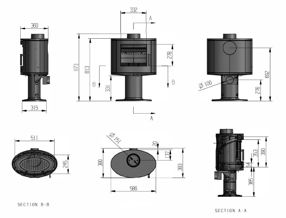 Для печи необходим дымоход диаметром 150 мм. Его можно подобрать в разделе дымоходы. Рекомендуем обратить внимание, что первыми элементами от печи могут быть дымоходы черного цвета из котловой стали,которые можно подобрать в разделе дымоходы КПД
