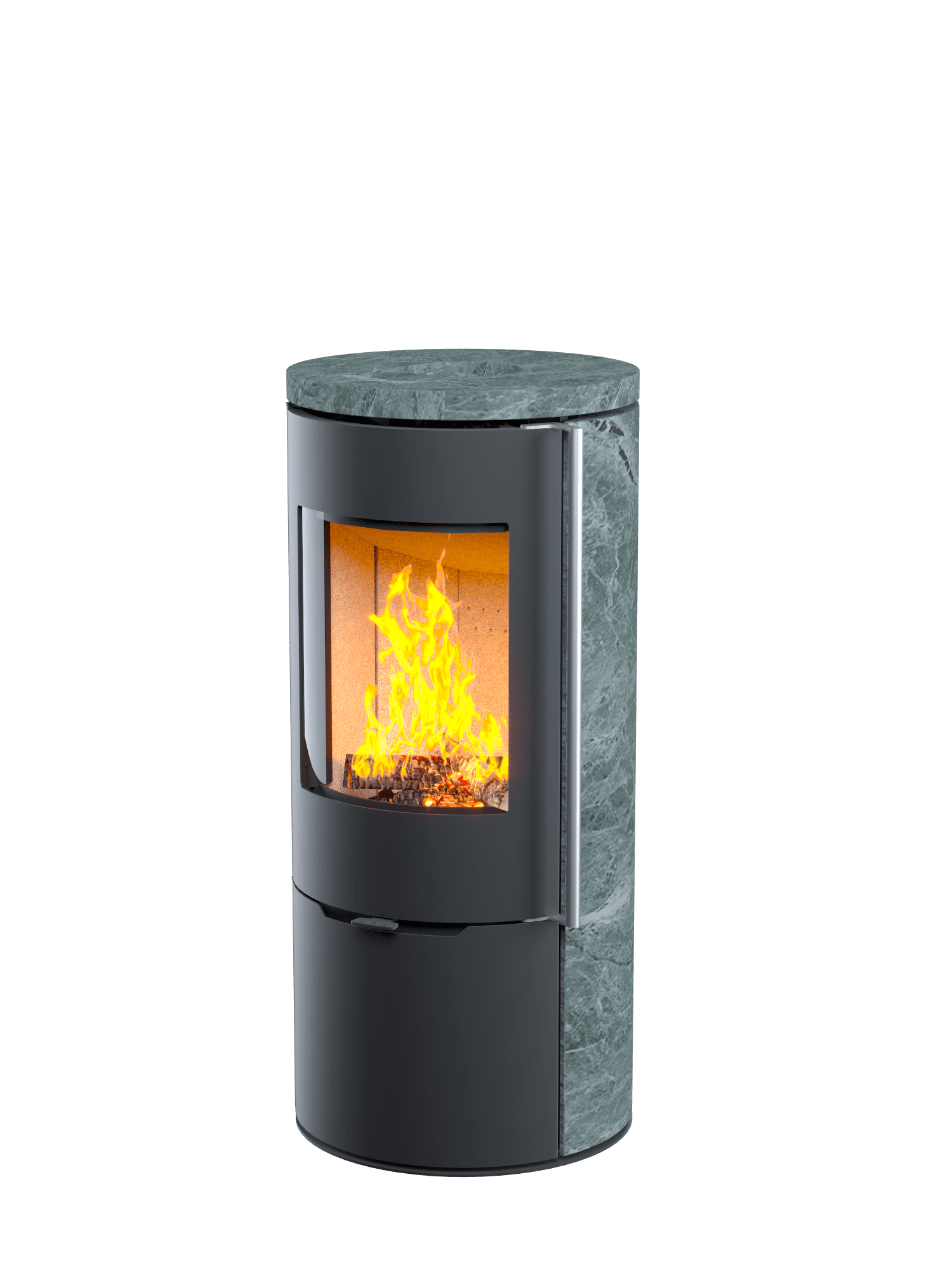 Печь-камин АСТОВ ASTOV R1.0 К с каменными панелями 4 варианта: Талькомагнезит, Крема беж, Песчанник, Пироксенит и круглой задней стенкой, c максимальной панорамой пламени создает прекрасный вид на огонь из любой точки помещения. Лаконичный дизайн, минимальная сложность ввода в эксплуатацию и минимальная нагрузка на установочную поверхность.
