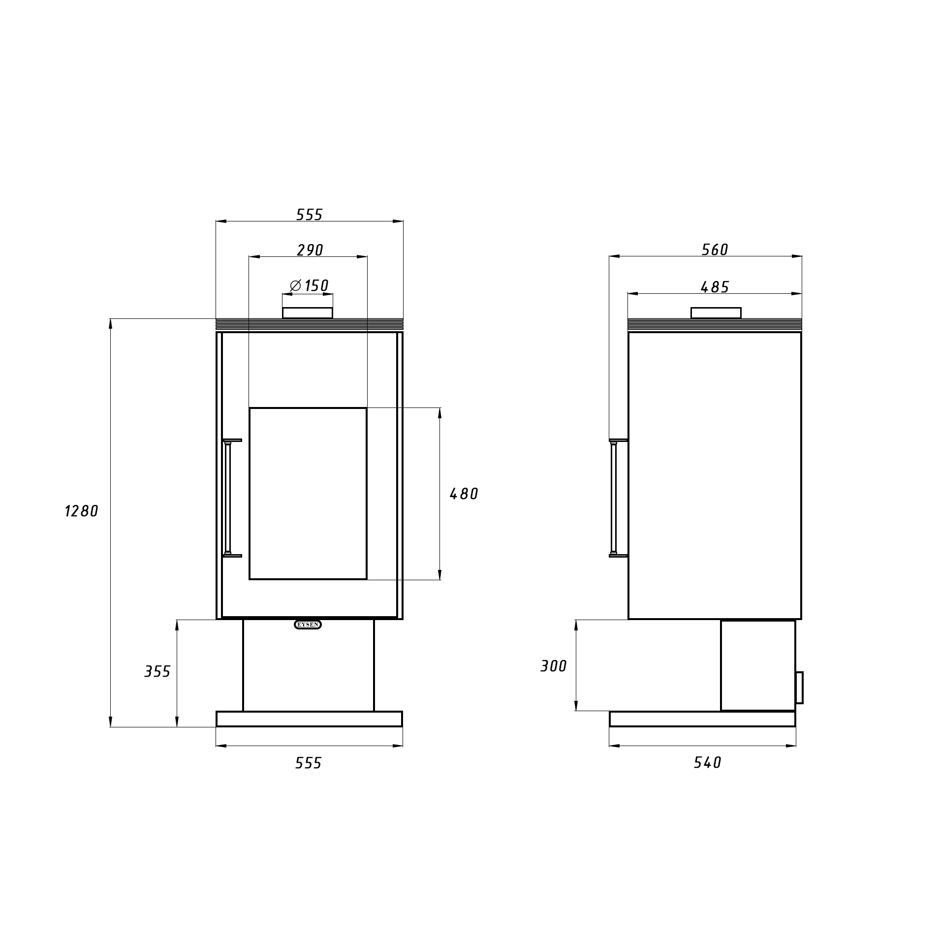 Под печь необходимо предусмотреть негорючее основание. Рекомендуем использовать листы под печь черного цвета.