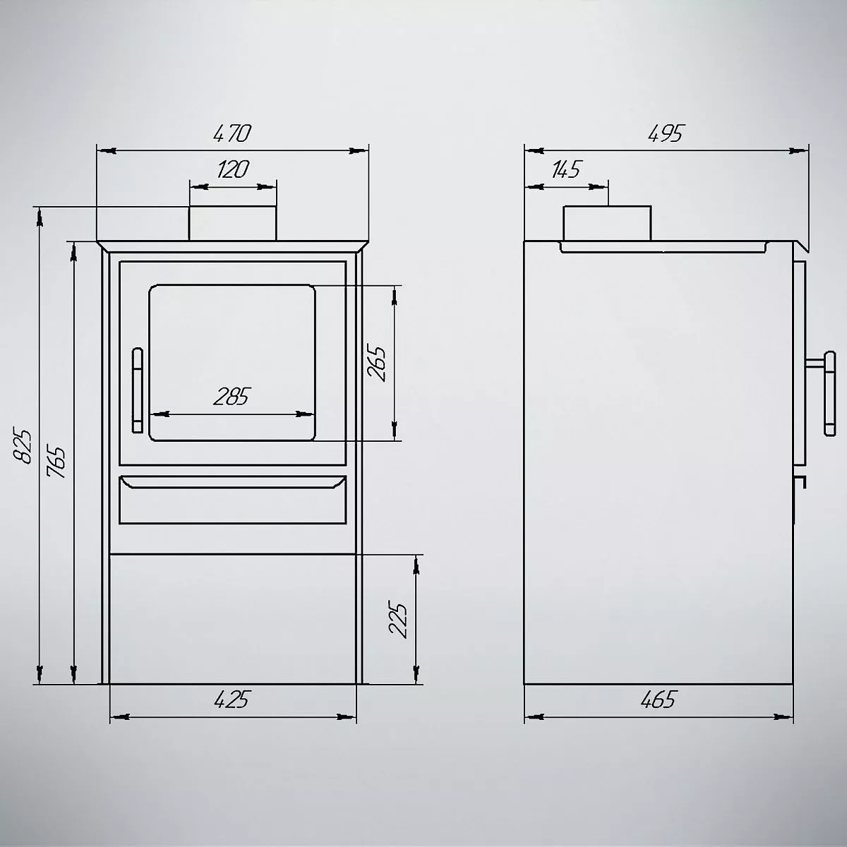 Под печь необходимо предусмотреть негорючее основание. Рекомендуем использовать листы под печь черного цвета.