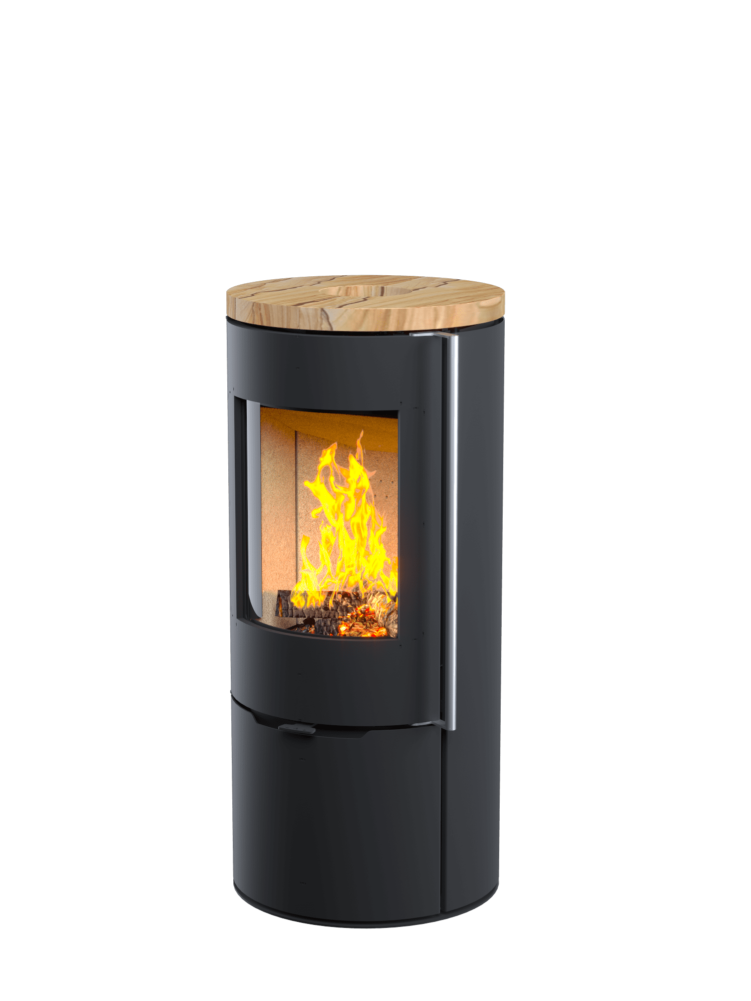 Топка отдает тепло через стекло и стальной корпус. Через стекло поступает порядка 20% тепла в виде лучистой, мягкой, расслабляющей энергии. Регуляторы подачи воздуха обеспечивают плавное изменение процесса горения от самого минимального до бушующего пламени. Герметичное закрывание дверки улучшает качество горения и регулируемость огня. Каждую модель печи-камина серии R1 можно укомплектовать каменной крышкой, плюс 10000 руб. к основной цене печи.