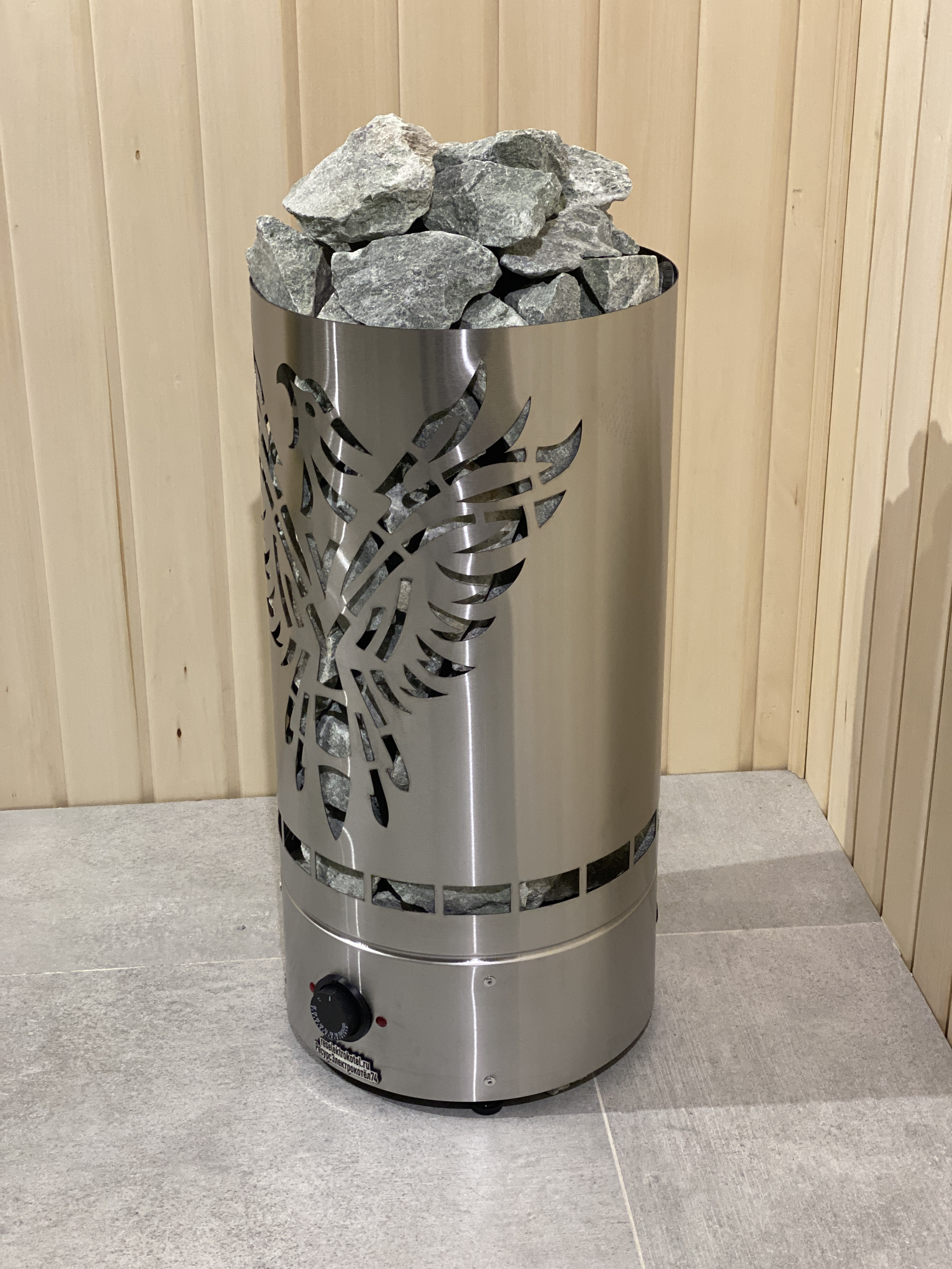 Цилиндрическая конструкция с высокой загрузкой камня дает возможность согреваться от камня, получая мягкое тепло.