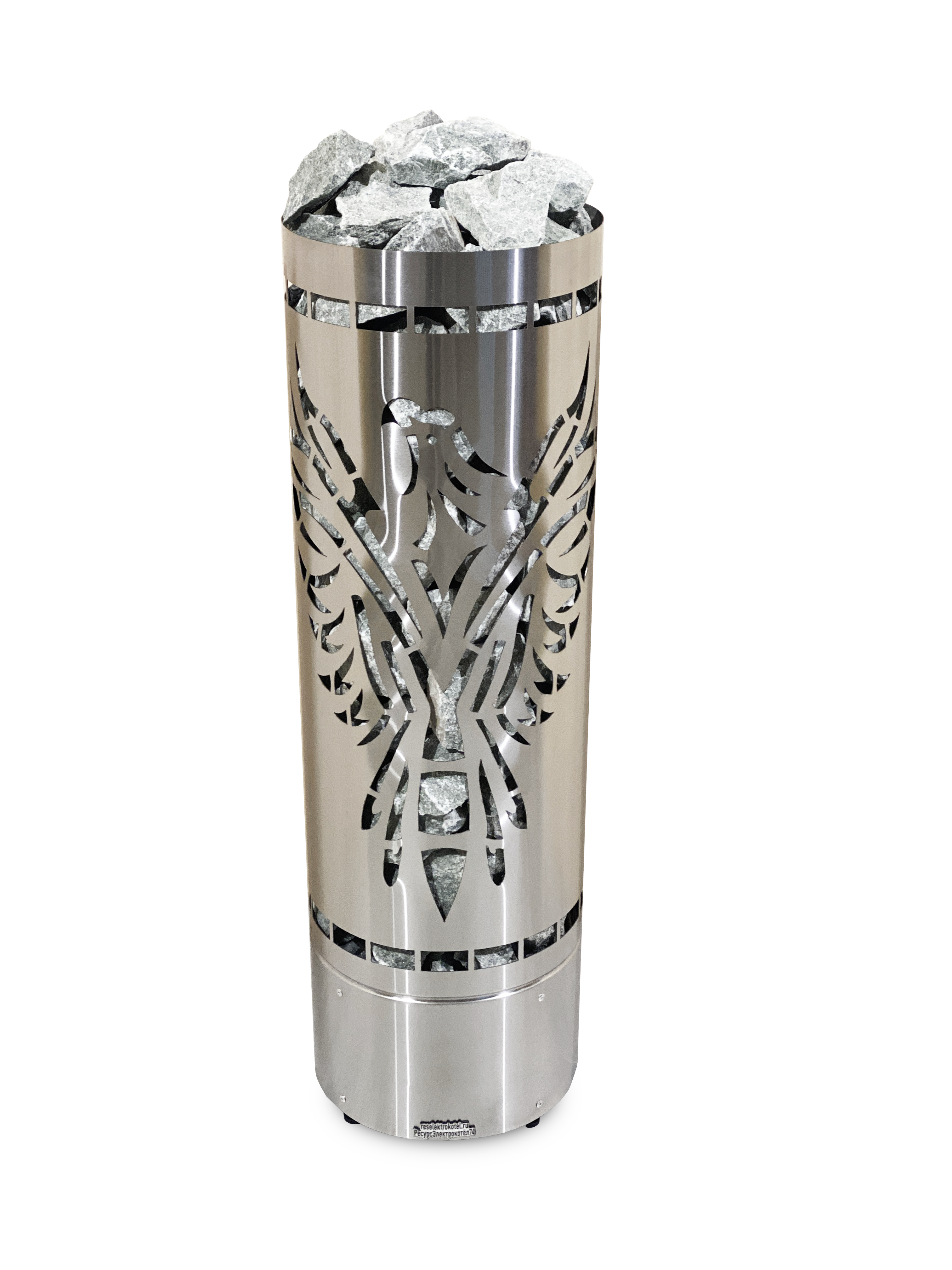 Цилиндрическая конструкция с высокой загрузкой камня дает возможность согреваться от камня, получая мягкое тепло.