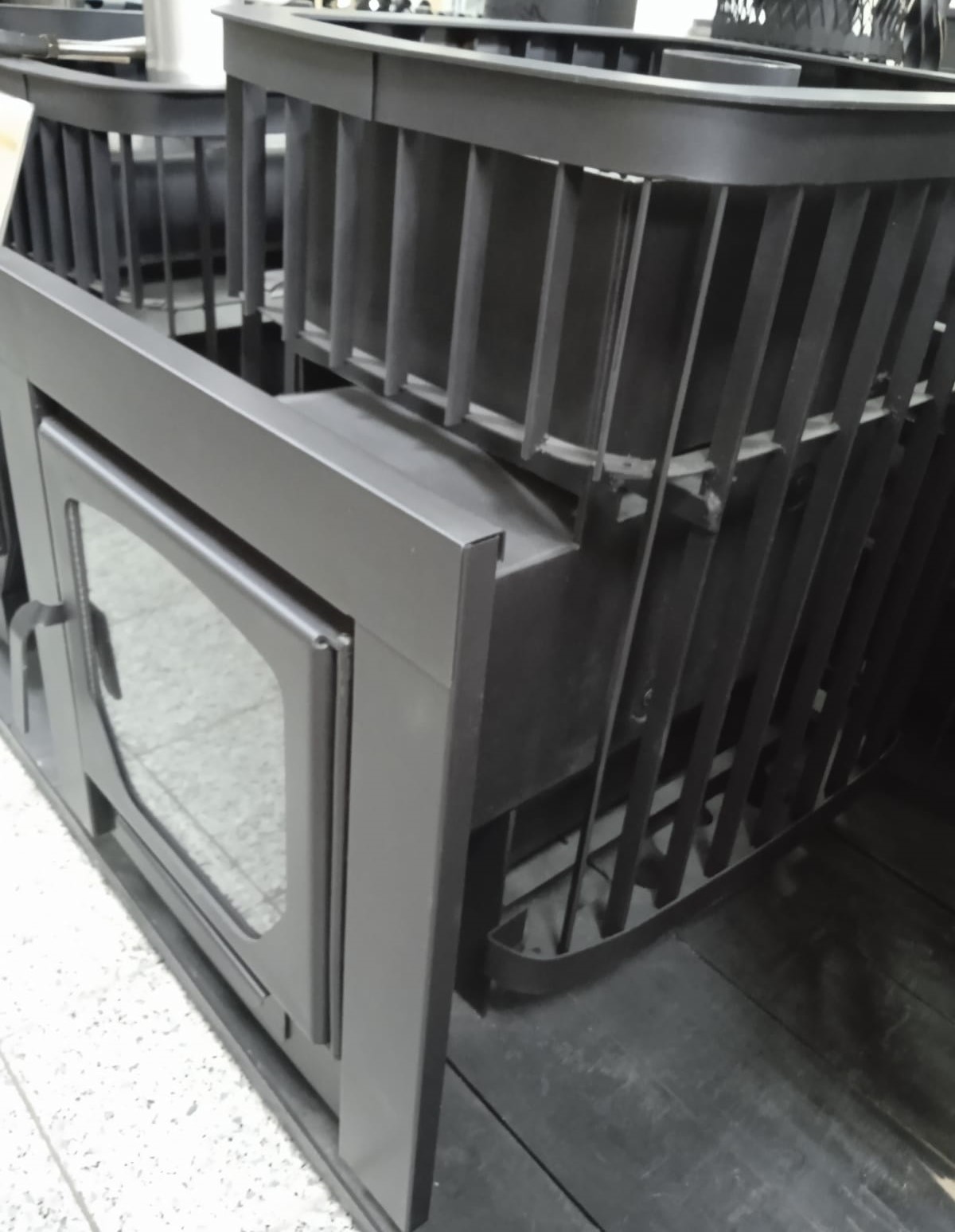 Печь для бани Варвара Каменка имеет сетчатый кожух-конвектор. Закладка камнем в таком кожухе позволяет в разы уменьшить излучение, получаемое от металла печи, при этом камень прекрасно аккумулирует тепло и сохраняет его на протяжении длительного времени. Максимальная площадь соприкосновения нагретых элементов печи с камнем около 1,3 кв.м. В качестве дополнительных опций в печи можно предусмотреть встроенный в топку теплообменник, а также возможно заказать удлинение топливного канала до 300 мм. Панорамная дверка со стеклом шириной 305 мм в данной модели печи позволит наблюдать за огнем из комнаты отдыха.