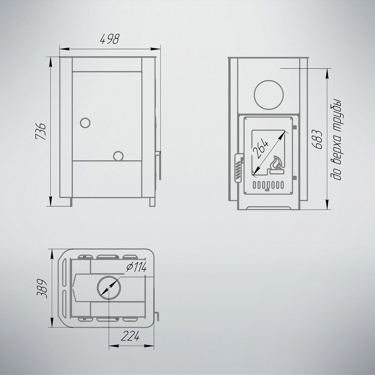 Для печи необходим дымоход диаметром 115 мм. Его можно подобрать в разделе дымоходы.