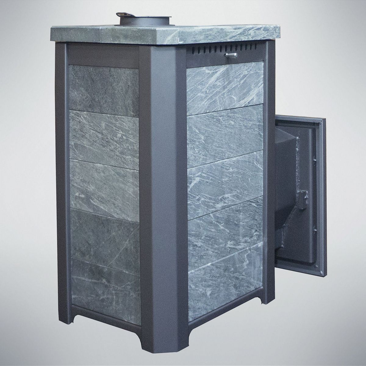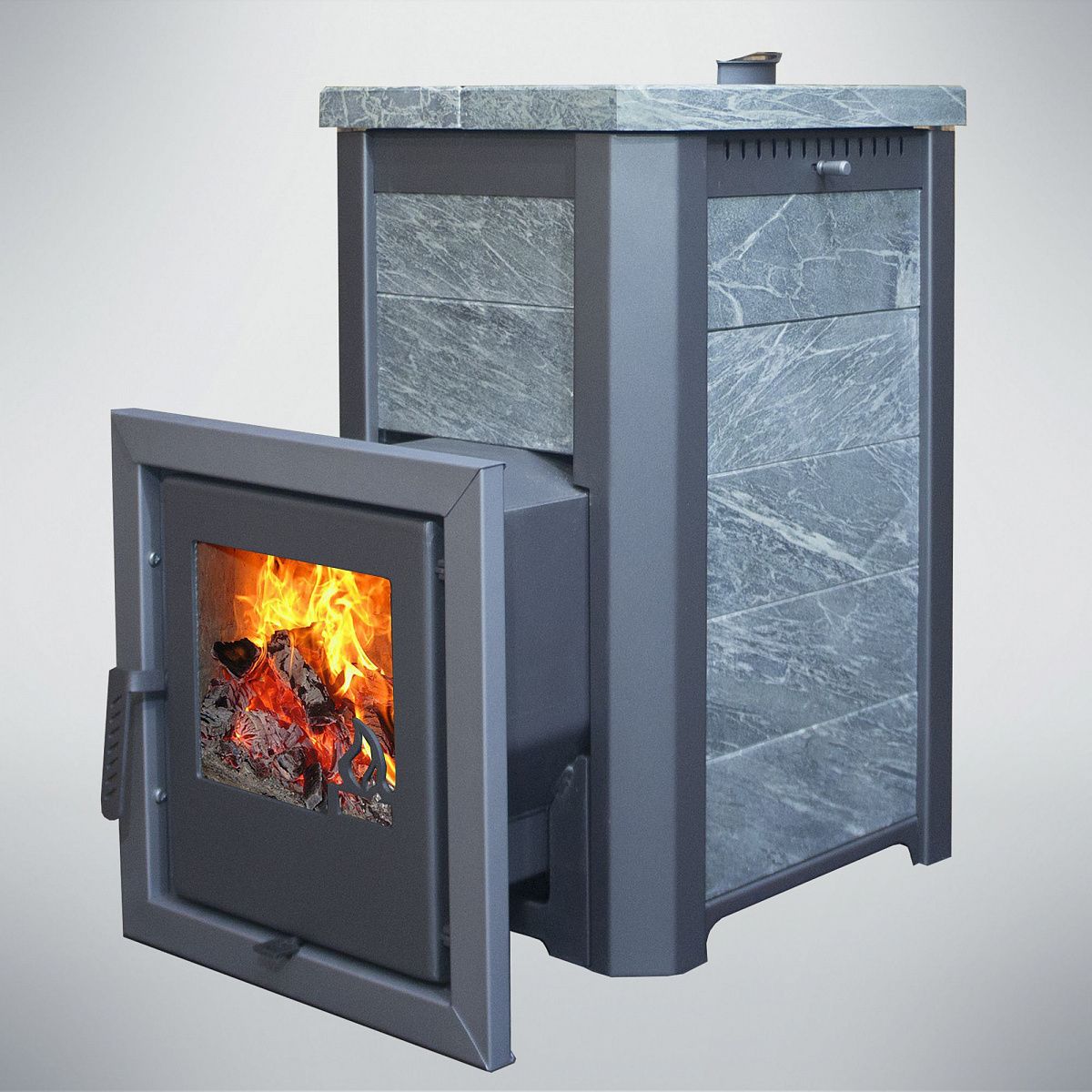 В линейке моделей печей Сказка вы можете сделать выбор каменной облицовки (Талькохлорит, Змеевик, Пироксенит), так же выбрать модификацию топок (Сталь 6 мм, Сталь 6 мм + Нержавейка aisi 304 6 мм, Нержавейка aisi 304 6 мм).