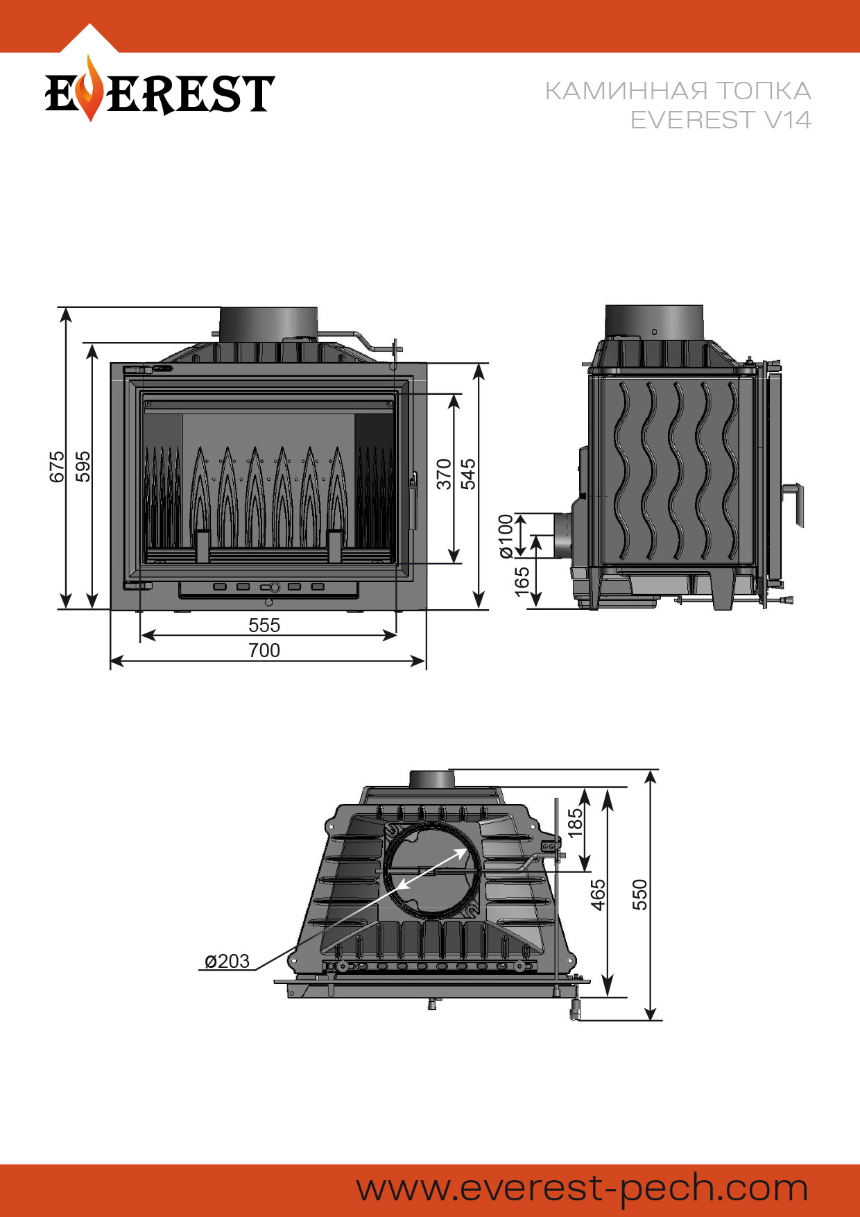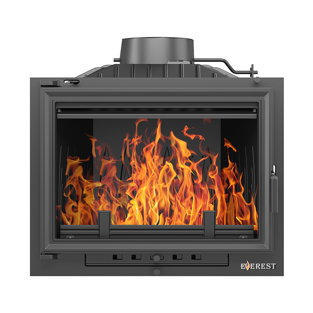 Каминная топка ЭВЕРЕСТ (EVEREST) V14 изготовлена из качественного жаростойкого чугуна с толщиной стенок 6-8мм.