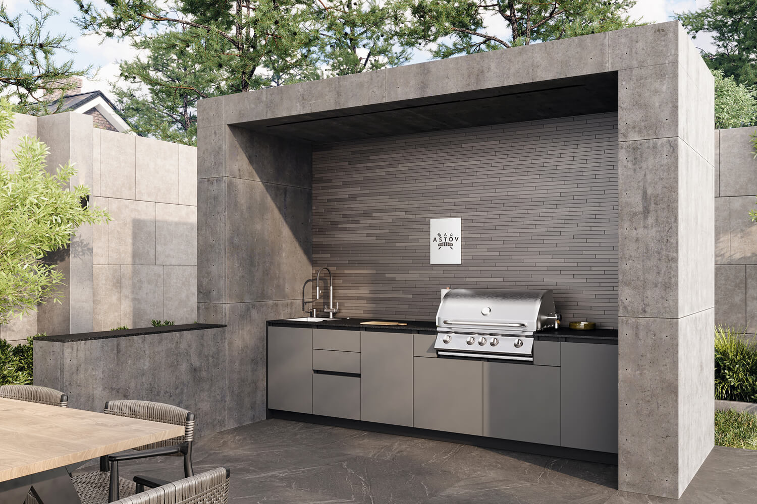 Договор заключается в момент оплаты Покупателем товара ТОЛЬКО в ОФЛАЙН-МАГАЗИНЕ. Делая предварительный заказ, Покупатель заверяет, что ознакомился и согласен с Политикой компании, она ему ясна и понятна.Кухня ASTOV BBQ № 18 (ширина 3240 мм)